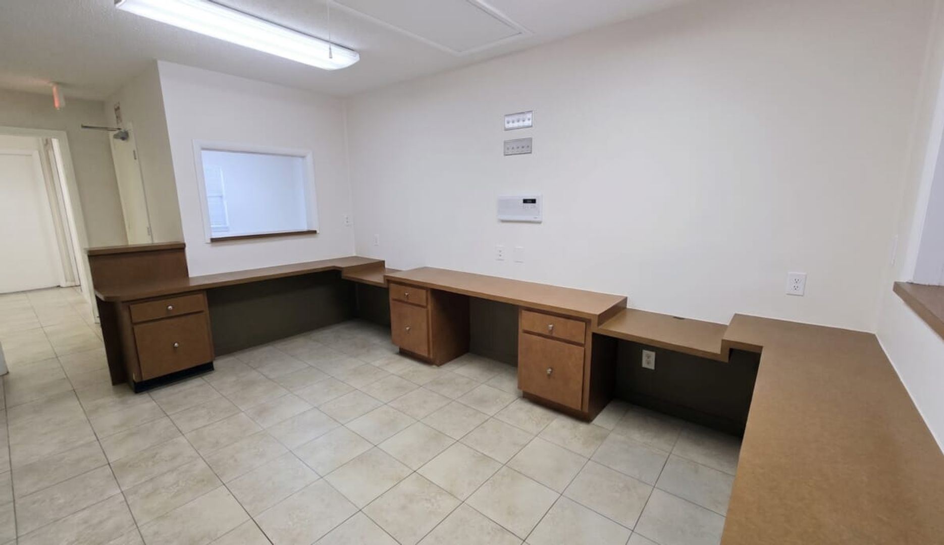 Modern Workspace: A large, central administration area offers plenty of desk space for filing, phone operations, and coordination.