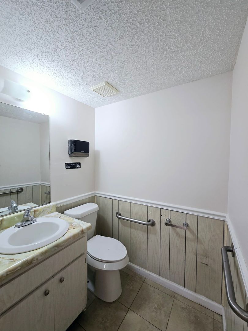 3 restrooms (sink and toilet) located on-site for staff and patients.